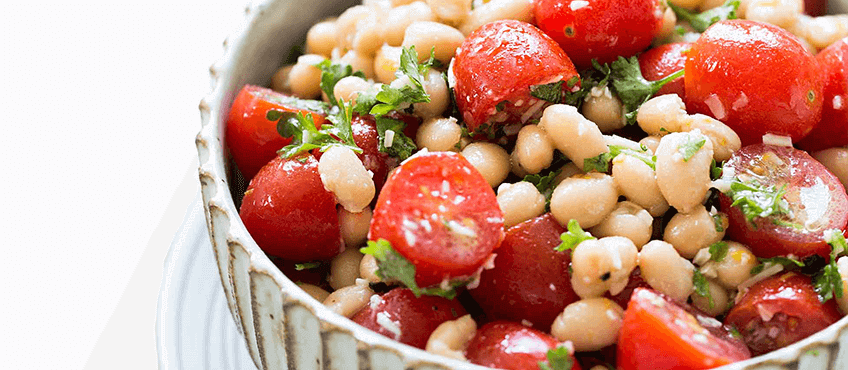Pasulj stavimo da se kuva, zatim dodamo luk i sodu bikarbonu. Kada pasulj omekša, dodamo so i ostavimo da se kuva. Pošto smo skuvali pasulj, procedimo ga, a luk odstranimo. U sud dodamo maslinovo ulje, limunov sok, beli biber, bosiljak i krupnu so, sve izmešamo i napravimo preliv. Vreli pasulj prelijemo pripremljenim prelivom. Sačekamo da se ohladi i nakon toga dodamo parčiće paradajza i maslinki.
